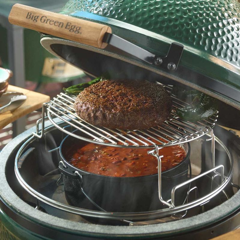 Unleash your culinary creativity with the ultimate expansion system for the Big Green Egg! The NEW Big Green Egg EGGspander System facilitates an extensive variety of cooking setups to easily utilize the full versatility of the XLarge and Large EGG.